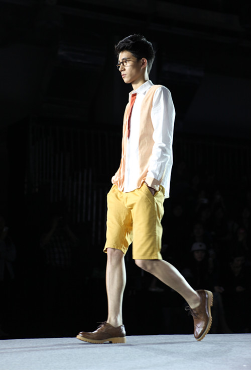获得色彩运用奖的李燕妮的作品,呈现唤醒感知,回归真实,实现心灵的放空和情感的回归的设计理念,清新的碎花头带,经典格纹与菱形纹、波点与简约条纹的交错以及撞色拼接全方位的精彩呈现了春夏男装所特有的经典廓型,独特的配饰依旧让人看得眼花缭乱。