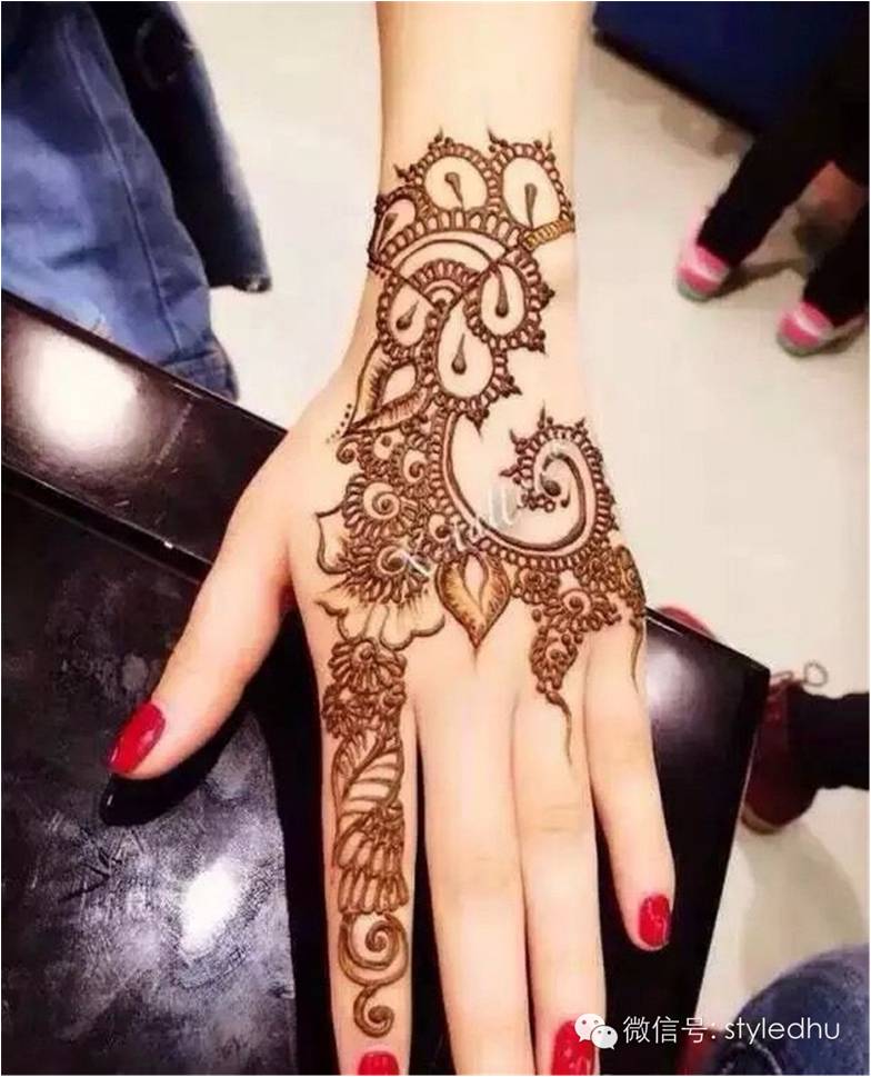 大一环艺大团体的李盛庆同学给我们带来了海娜纹身的魅力。在采访中,李盛庆同学讲到:“我喜欢去各地旅游,在旅游中发现当地的民俗特色,然后常常会深陷其中,海娜纹身就是其中之一。海娜纹身的颜料是海娜花,它是一种纯天然的植物,对身体没有任何伤害。其实,海娜纹身是印度的一种传统,新娘在出嫁时,全身都会画满海娜纹身。我绘制的图案基本来是印度的传统图案,有时也会根据顾客的爱好来绘制。”