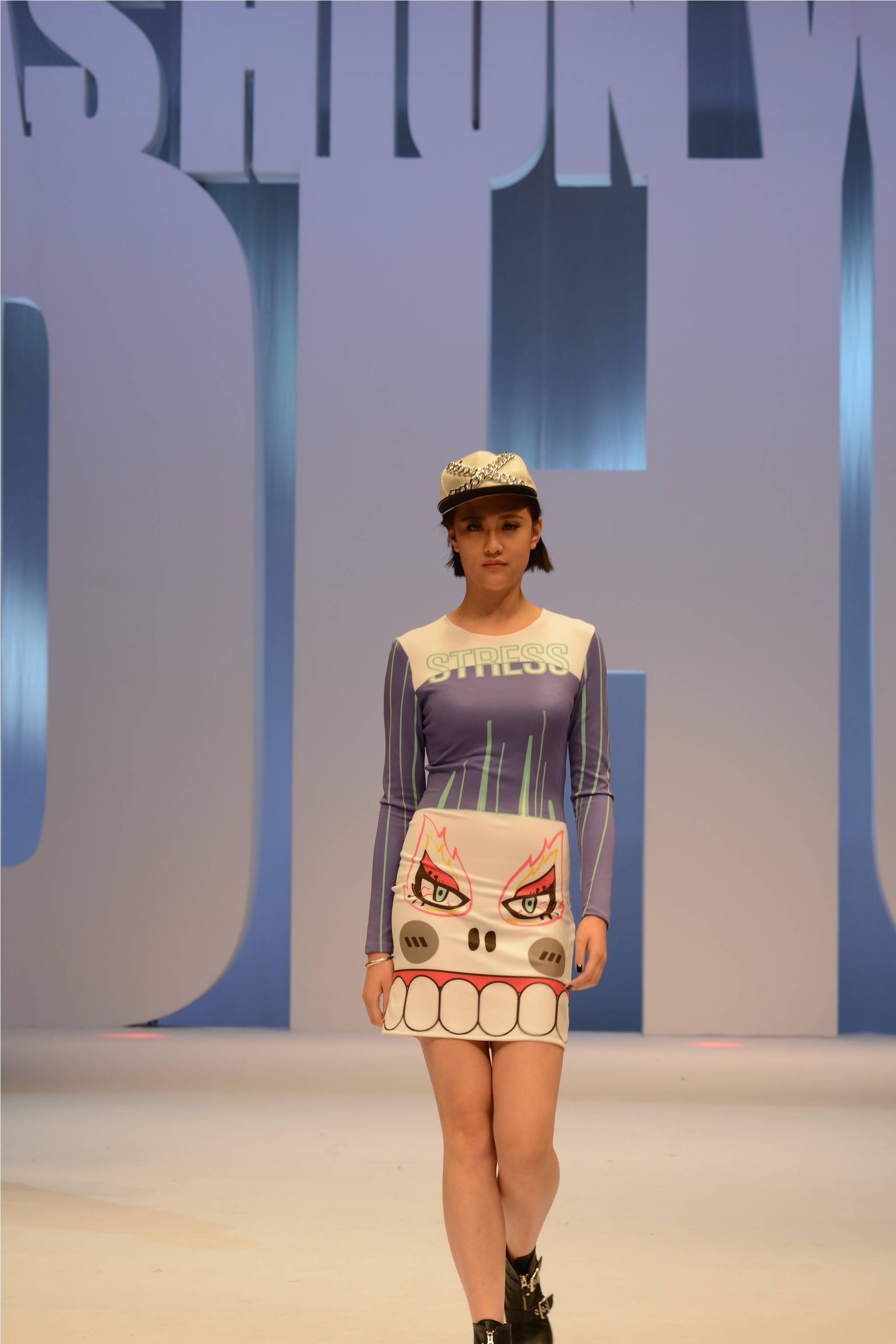 系列七:“Stress”, 设计师运用压力的瞬间表情、身体或大脑结构变化等多种手法,借助视觉化的图案,表现出了有趣可爱的龙凤街时尚。