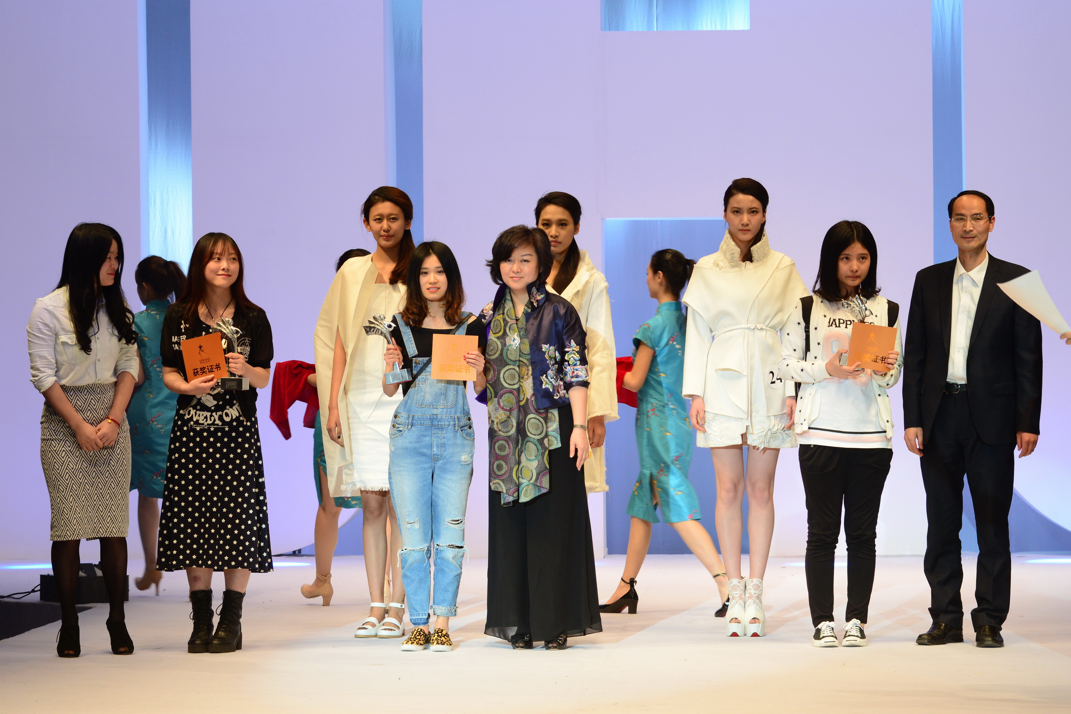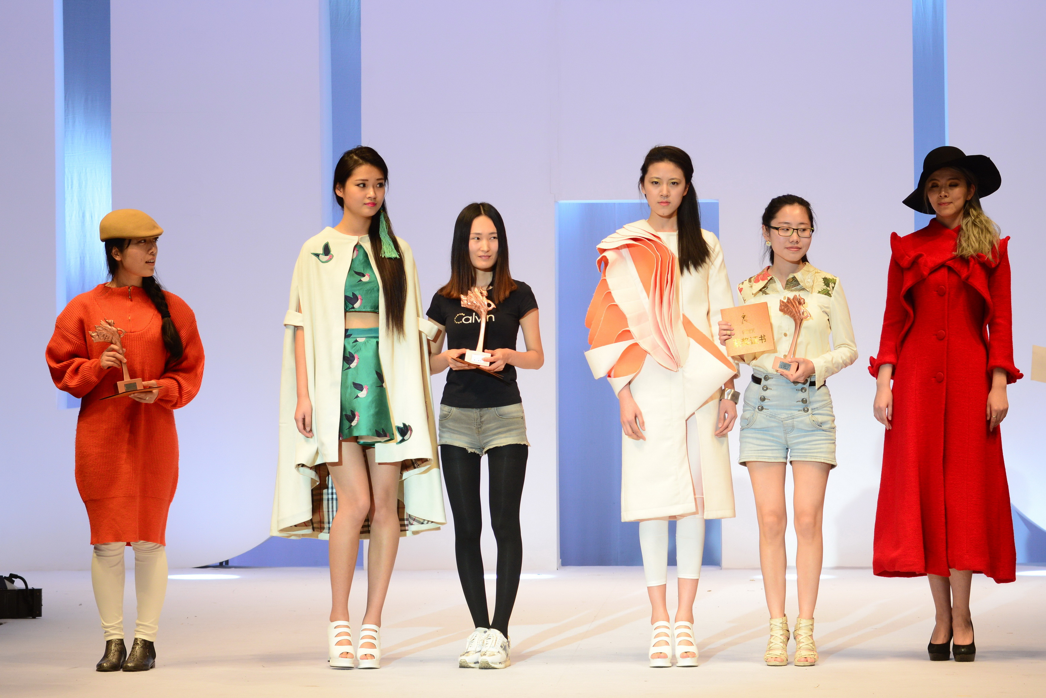 走秀结束,随之而来的是紧张的评分环节。一段服装•艺术设计学院介绍VCR播放后,获奖名单最终揭晓¬——立裁技术精英铜奖获得者:来自苏州大学的3号选手胡小燕,“裁出心衣”设计铜奖获得者:来自中文av