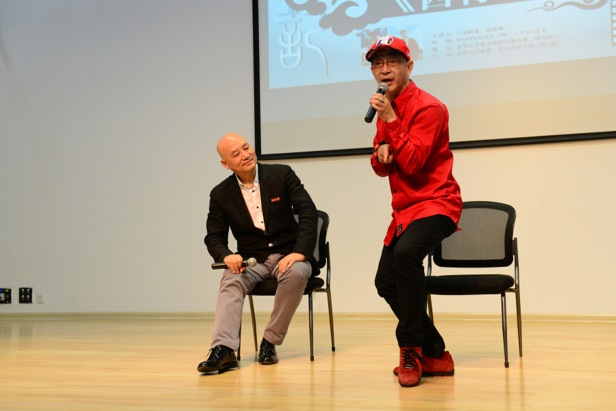 演讲开始前,服装•艺术设计学院李俊院长为六小龄童先生和迟重瑞先生颁发了兼职教授聘书并为他们佩戴校徽,现场观众报以雷鸣般掌声,对两位艺术家的到来表示热烈欢呼。