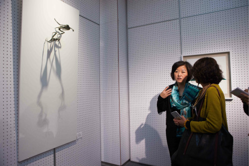 展厅里热闹非凡,校内外观众认真观看每件作品,艺术家、设计家们相互交流,聆听别人创作的想法和故事,分享自己创作时的心情与感受。