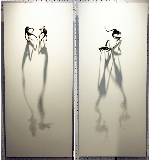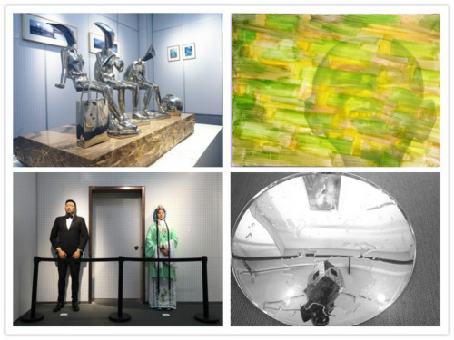 《因缘系列》(邹东方):采用青铜、综合材料,运用雕塑、投影、画三者结合的手法,体现今生、前世与来世之间的关系;作品具有视觉冲击力,给人以遐想空间。