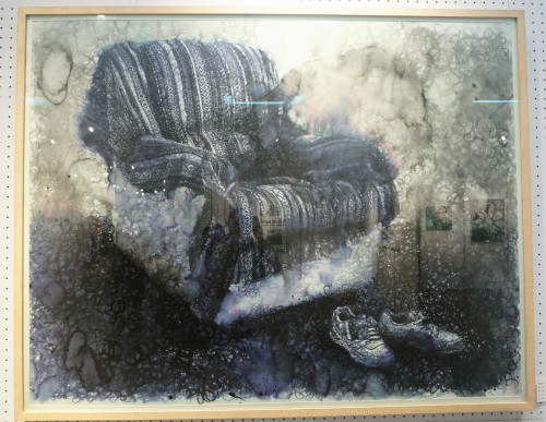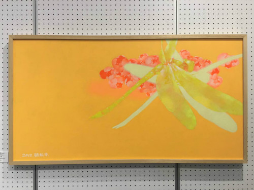 《蜻蜓》(上海工艺美术职业学院顾振华):作品运用了传统油画中不经常使用的,甚至被教科书摒弃的颜色作画,作者通过创作儿时的“玩伴”蜻蜓,回忆了自己儿时经历。