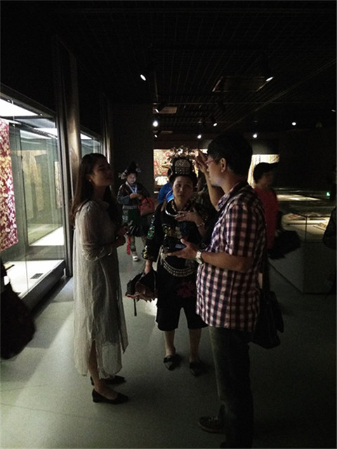 参观结束后,我们采访了刺绣班的班长黄贤梅。黄贤梅是来自贵州的圪佬族学员,她说,这次博物馆之行让她大开眼界。在此之前,她从没有见过如此之多精美的古代丝织珍品。她坦言,从这些古人的优秀作品中获得了很多灵感,想要把这些灵感运用于自己擅长的传统手工剪纸和刺绣之中。