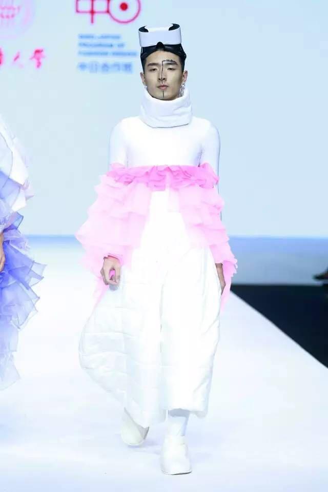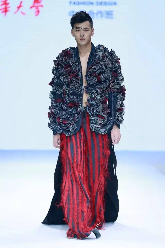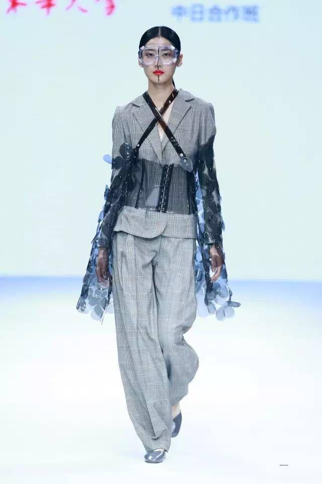 在“上场白、下场白”主题下,毕业生们对“东方与西方”、“传统与创新”、“趣味与艺术”等课题,进行深入思考和探索。在“东方与西方”课题中,探索如何以西式结构创新表现东方内敛与留白,以及传统戏剧唱段格律及起伏。在“传统结构与素材创新”课题中,尝试将纸感、PVC等新型材料与传统和服、武士等服饰元素相结合。
