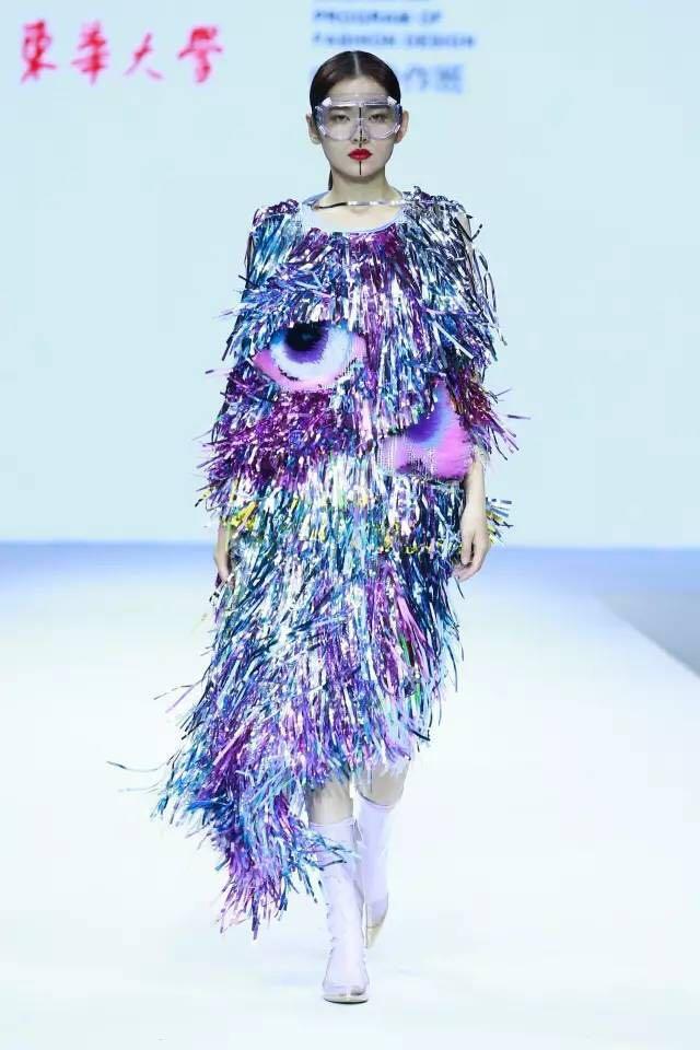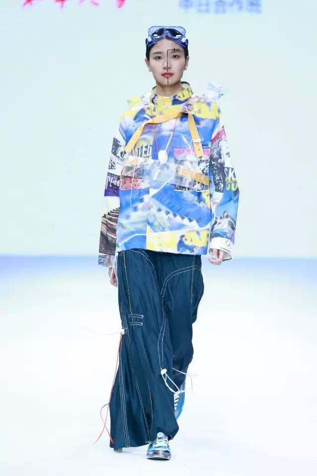 参与“趣味与艺术”课题的同学们,着眼于新一代消费群对服装趣味性的需求,将日常生活用素材进行再造和创新。如有;以保温涂层材质来表达对未来“衣食”行为的畅想;以流行拼豆游戏手作素材,来表达游戏艺术、趣味服装的概念。同时,在此课题探索中,不少学生进行了前期原创性要素的开发。如作品《梦》的手绘形象来自于作者原创插画绘本人物形象,借助纽扣做头,将二维的图案变成三维的结构;而作品《FACE TO FACE》,则是在手绘面部肌肉及表情的图案基础上,以多色吸管进行面部和表情的“3D”塑形。