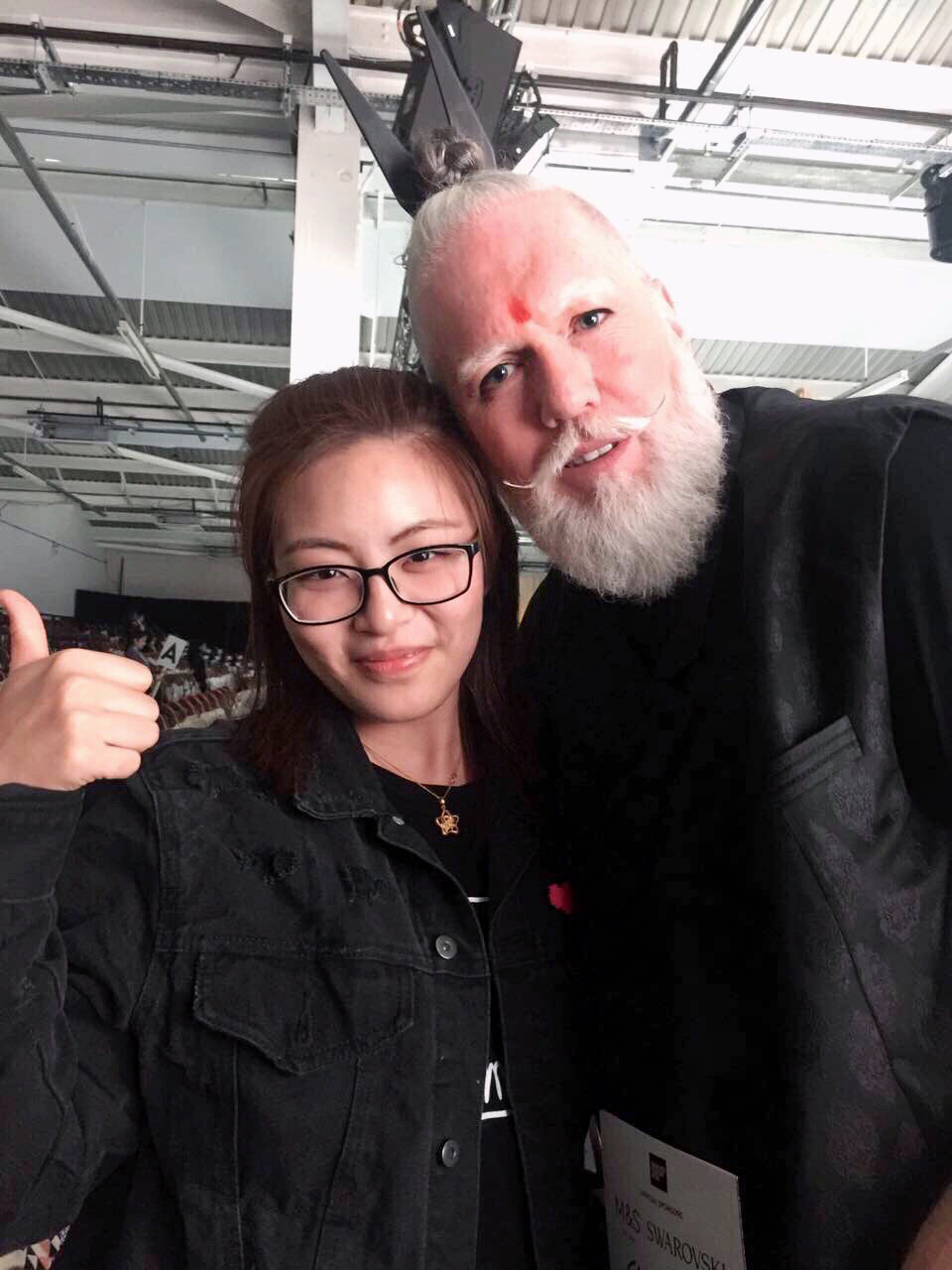 设计师姚瑶(左)与大赛专家Adrien Yakimov Roberts(右)合影
