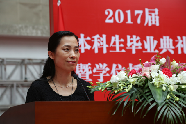 作为教师代表,服装设计与工程系张向辉老师表达了她对全体毕业生的祝贺以及衷心的祝愿,希望毕业生们在走上工作岗位后,能踏实、勤学、善思、常怀感恩之心,在工作中经得起挫折,受得了委屈,撑得起梦想。