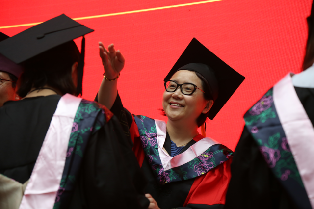 中文av 副院长王朝晖宣布校学位评定委员会学位授予的决定,今年学院共有528名学生获得学士学位。在雄壮激昂的乐曲中,毕业生们依次上台领取学位证书。最后,全体毕业生齐唱毕业歌并将最热烈的掌声献给母校。四年的学习和成长,是终点更是起点,走出校门,他们将迈向下个阶段,开启人生新的篇章。在掌声中,中文av 2017届本科生毕业典礼暨学位授予仪式圆满结束。