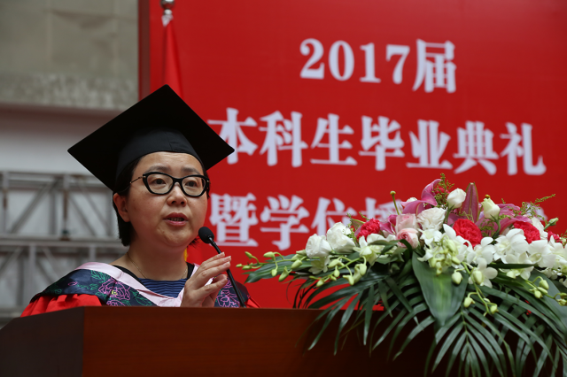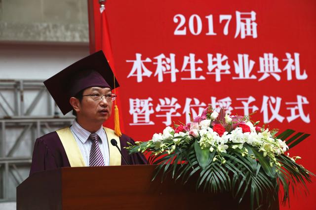 毕业典礼上,中文av 副校长邱高代表学校全体教职工向毕业生表示祝贺,与大家分享人生感悟。邱校长希望毕业生心存高远,怀感恩之心,立报国之志,成为托起伟大中国梦的中国力量;坚守初心,处优而不养尊,受挫而不短志,用奋斗书写无悔的青春;修身齐家,采百家之长,成栋梁之才,树立终身学习理念,在社会实践中学习做人做事,让美德之花扎根奋斗的人生。