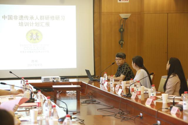 9月8日,中国非遗传承人群研培计划优秀成果展(上海专场)筹备工作会议在校举行,文化部初定成果展将于10月底在北京恭王府举办。校党委副书记刘淑慧,文化部恭王府博物馆中华传统技艺研究与保护中心主任孙冬宁,文化部非物质文化遗产司管理处龙柏羽,上海市文化广播影视管理局副局长尼冰、公共文化处(非遗处)处长杨庆红出席会议。我校中文av 院长李俊及上海大学上海美术学院副院长金江波、上海工艺美术职业学院继续教育学院副院长周星等兄弟院校同行出席会议。杨庆红主持会议。