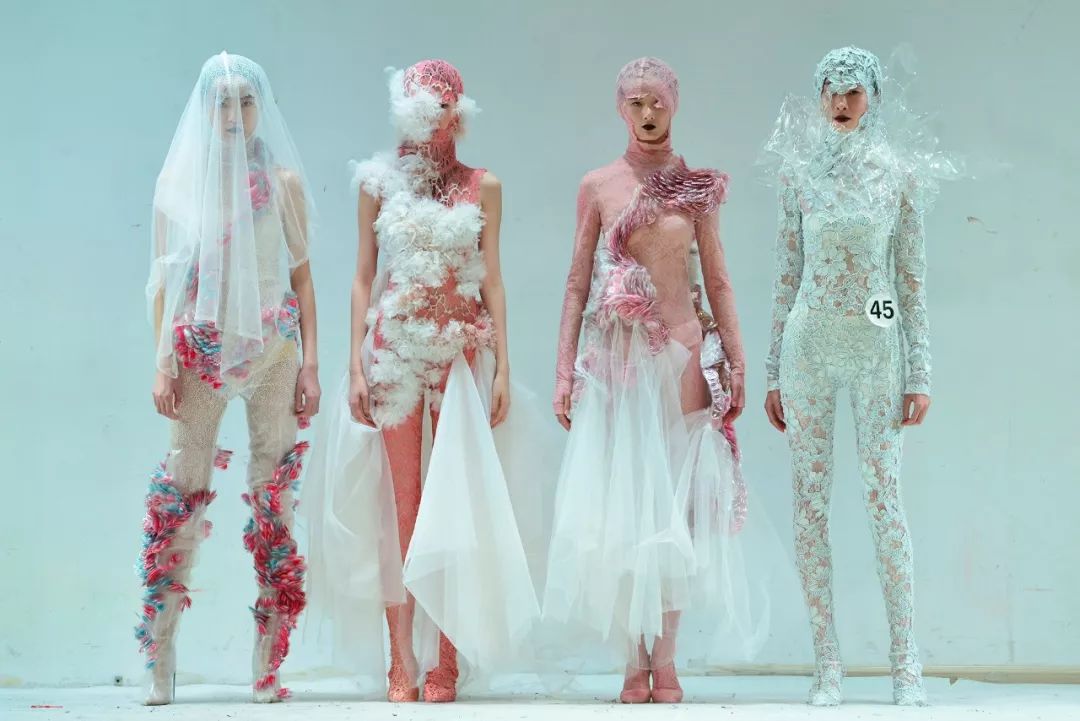 本场作品决赛以“无界”为主题,2014级学生们基于这一命题,与2018/2019秋冬国际流行趋势及当代时尚思潮相结合,在此基础上寻觅自己的设计灵感。本次作品决赛一共展示了59个系列共234套服装,设计师们在界限的打破与超越、融合、转换等既有格局的演变与重塑上展开创意,用极具冲击力的想象让界限成为灵感的起源,用年轻的视角汲取来自传承创新、当代艺术、民族风貌、街头时尚、科技展望等相互交织的精华,在开放式思维下进行主题诠释和设计演绎。