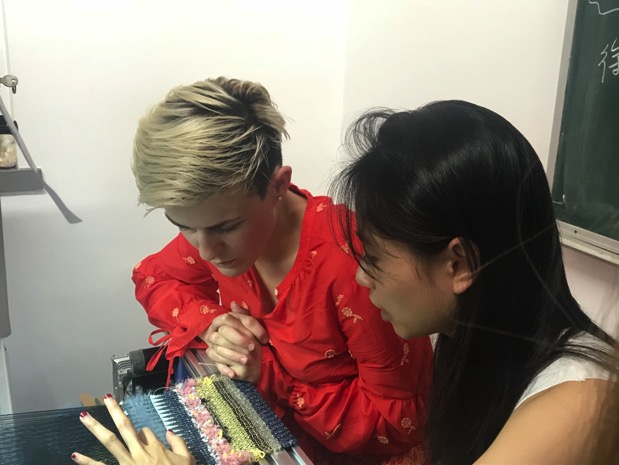 2018年7月5日,“纺织品前沿国际合作”课程在我院的编织教室为期一周的授课正式结束。此次前来授课的老师是来自英国中央圣马丁艺术设计学院的伊丽莎白·阿什顿·罗斯(Ashdown·Elizabeth Rose)讲师。此次也是由英国中央圣马丁艺术设计学院第六次派纺织与服装面料专业老师为中文av 纺织品设计专业同学授课。虽课程仅有短短的五天时间,却给服装(纺设)1501的同学们带来不小的收获。