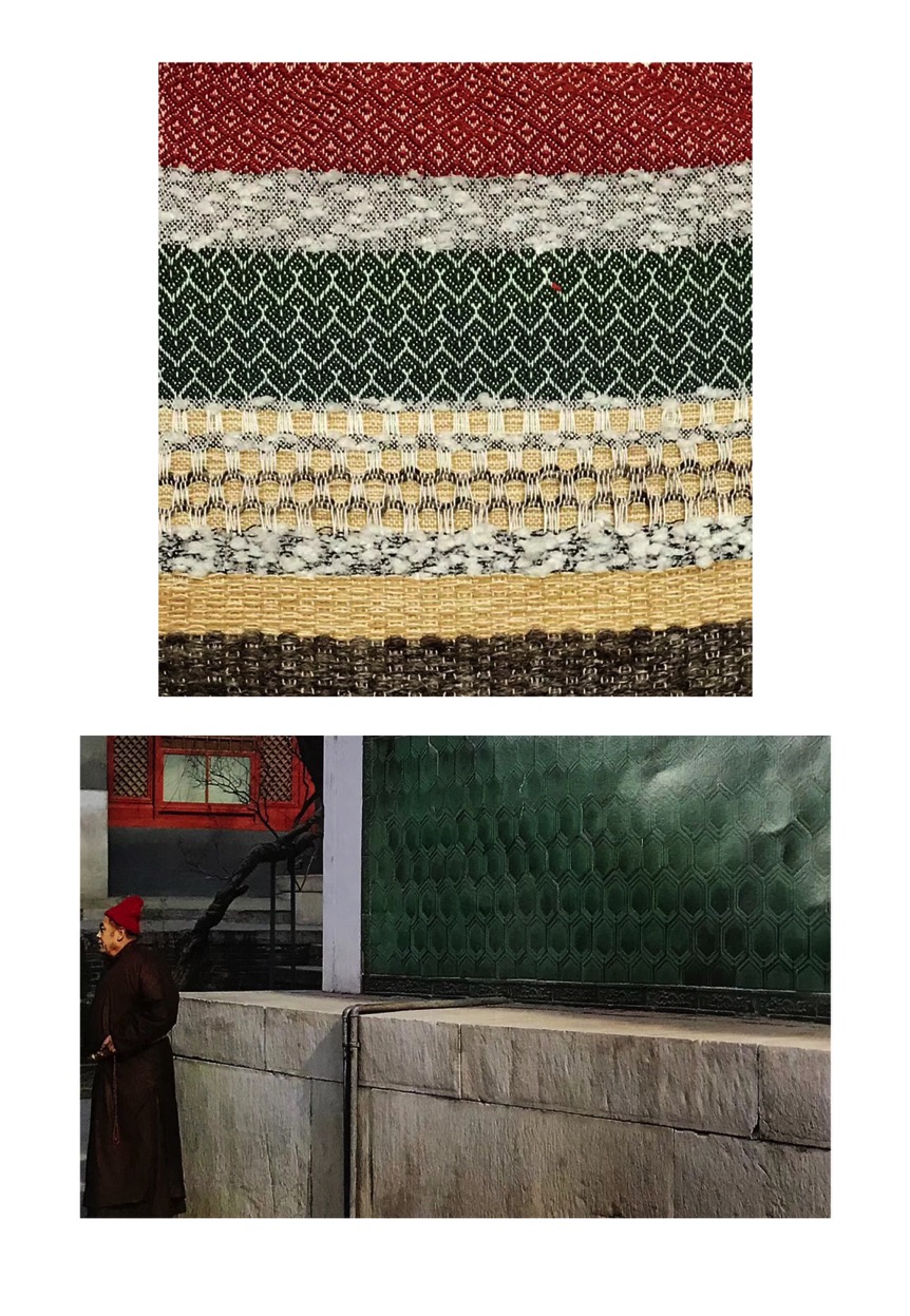 Elizabeth帮助同学们对整个织造与梭织面料设计的基本原理进行理解,并为大家选取了合适的经线排列方法。怀着小心与试探,同学们迈出了第一步。当各种各样错落有致的图案展现在织物上,大家内心都充满欣喜。