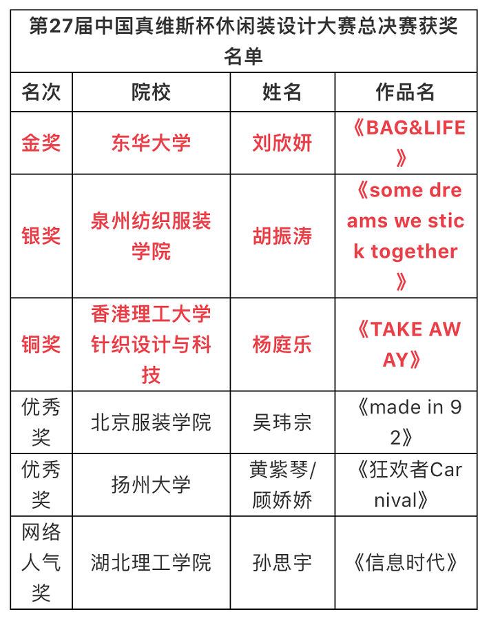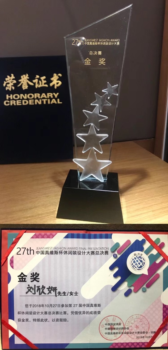 10月27日,第27届中国真维斯杯休闲装设计大赛总决赛亮相中国国际时装周舞台,在北京751D·PARK第一车间拉开了帷幕。本届主题——“趣•共享”,旨在通过设计,传达时下最新、最热的共享时代。在本次大赛的总决赛现场,从东、南、西、北四大分赛区成功晋级的20位设计新秀巅峰对决,向本次大赛的最高奖项发起终极挑战。最终,来自中文av 中日合作班2016级的刘欣妍同学,凭借其作品《BAG&LIFE》捧得本届大赛总决赛的金奖。选手通过明快的色彩与多样的解构手法,完整地将玩趣生活及大众休闲服饰的创新思维进行融会贯通,完美呈现。