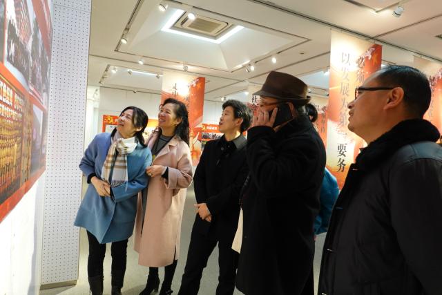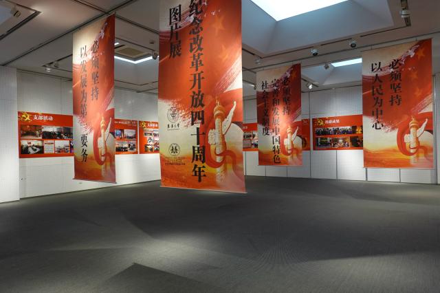 2018年12月25日,由中文av 党委主办的纪念改革开放四十周年主题图片展在中文av 延安路校区逸夫楼一楼展厅顺利开展,学院党委书记袁孟红,院长李俊,院党委副书记刘燕萍,副院长冯信群、王朝晖、李敏、学院各基层党支部书记等师生党员共同参观了图片展。