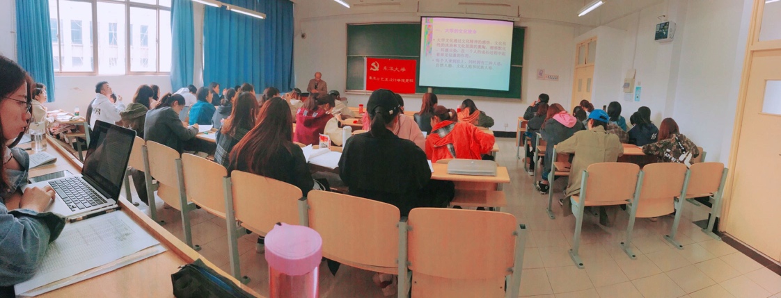 3月26日 “东华校训与东华精神” 主题课程,由贺善侃教授讲课。教授为大家解析了东华校训“崇德博学,砺志尚实”,以及东华精神“积极向上,爱校荣校,崇尚学术,追求卓越,敬业奉献”的具体含义以及校史故事。东华精神应当是我们每一个东华学子的努力方向和长远追求。