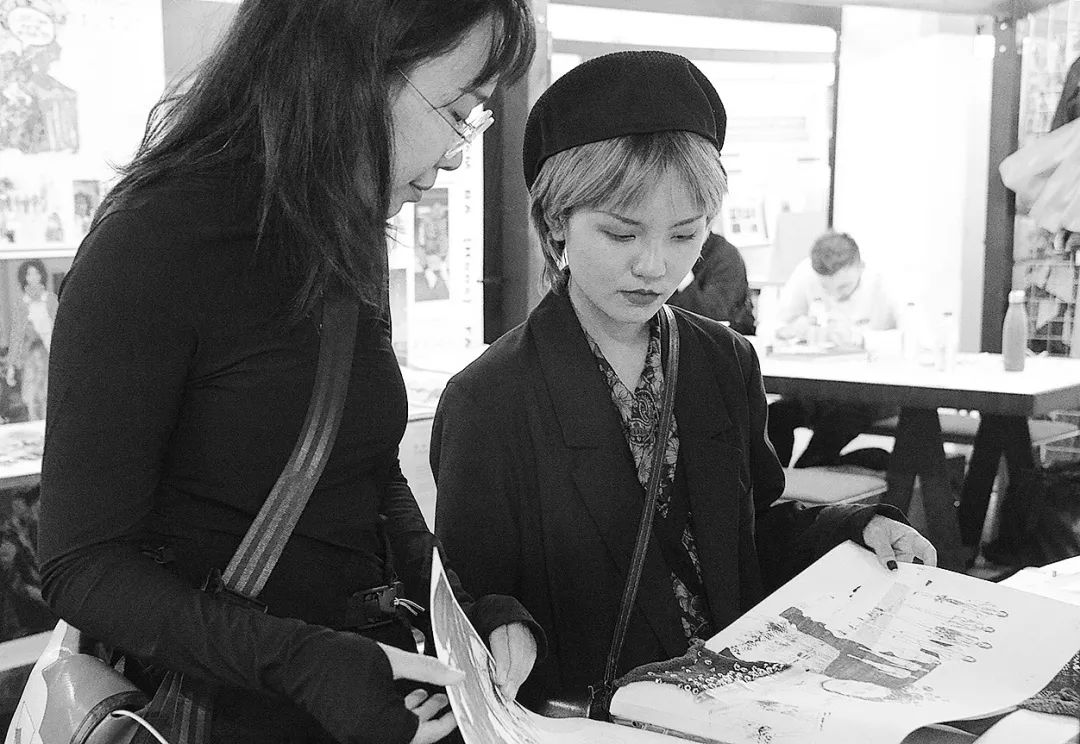 伦敦毕业生时装周国际理事,阿德里安(Adrien Yakimov Roberts)在仔细看过两位系列作品的介绍后,对作品提出了宝贵的意见,认为作品完成度高,有相当敏锐的时尚观察力,作品具备了近几年国际趋势引领下的高水准。现场两位同学及其他优秀新锐代表还展示了作品的创作思路及制作过程的作品图册等,国际同行们在沟通中表示对中文av “新锐培优计划”近两年成绩的赞誉,同时也表示希望有更多的交流与合作。