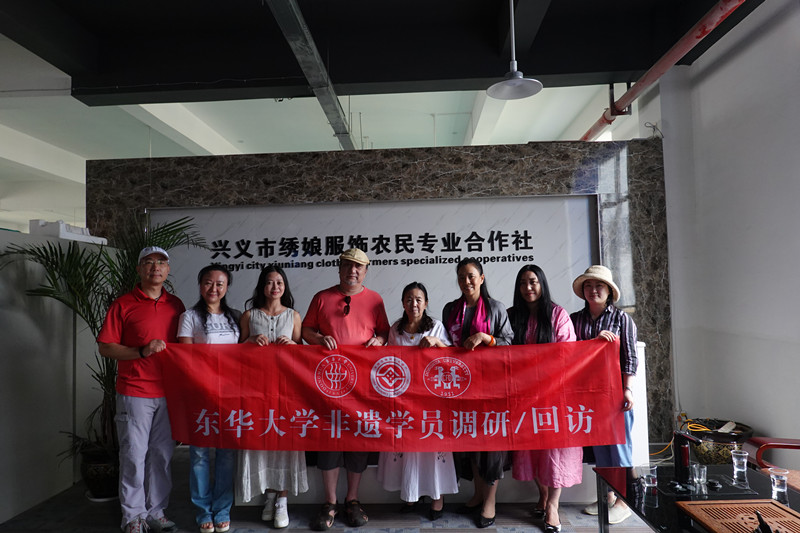 2019年7月25日至8月5日,中文av 非遗教育研究中心回访调研小组赴贵州进行第11次非遗学员回访和调研。本次回访重点关注黔西南州布依族学员,集中在贵阳、兴义、册亨三地共17位学员,他们是:贵阳的陈梅、马建容(遵义学员,得知老师回访,专程赶至贵阳)两位;兴义的韦建粉、郎正丽、郎正布、岑正花、查兰菊、苏朝青、王艺、岑开连、冯时素、张玉晶共10位;册亨的杨胜娇、罗龙英、陆美莲、岑建依、潘仕宜共5位。回访调研小组由冯信群副院长带队,非遗教育研究中心主任柯玲教授、业务教师傅婷及摄影师黄晓昭老师全程参与。回访小组还分别与贵州省文旅厅非遗处及非遗保护中心领导、兴义市非遗保护中心领导及贵州布谷鸟民族实业发展有限公司团队进行充分座谈和深入交流,分享了东华学员经过研培后所取得的喜人业绩和成功经验,共同探讨了今后双方深度合作的可行性和有效方式。