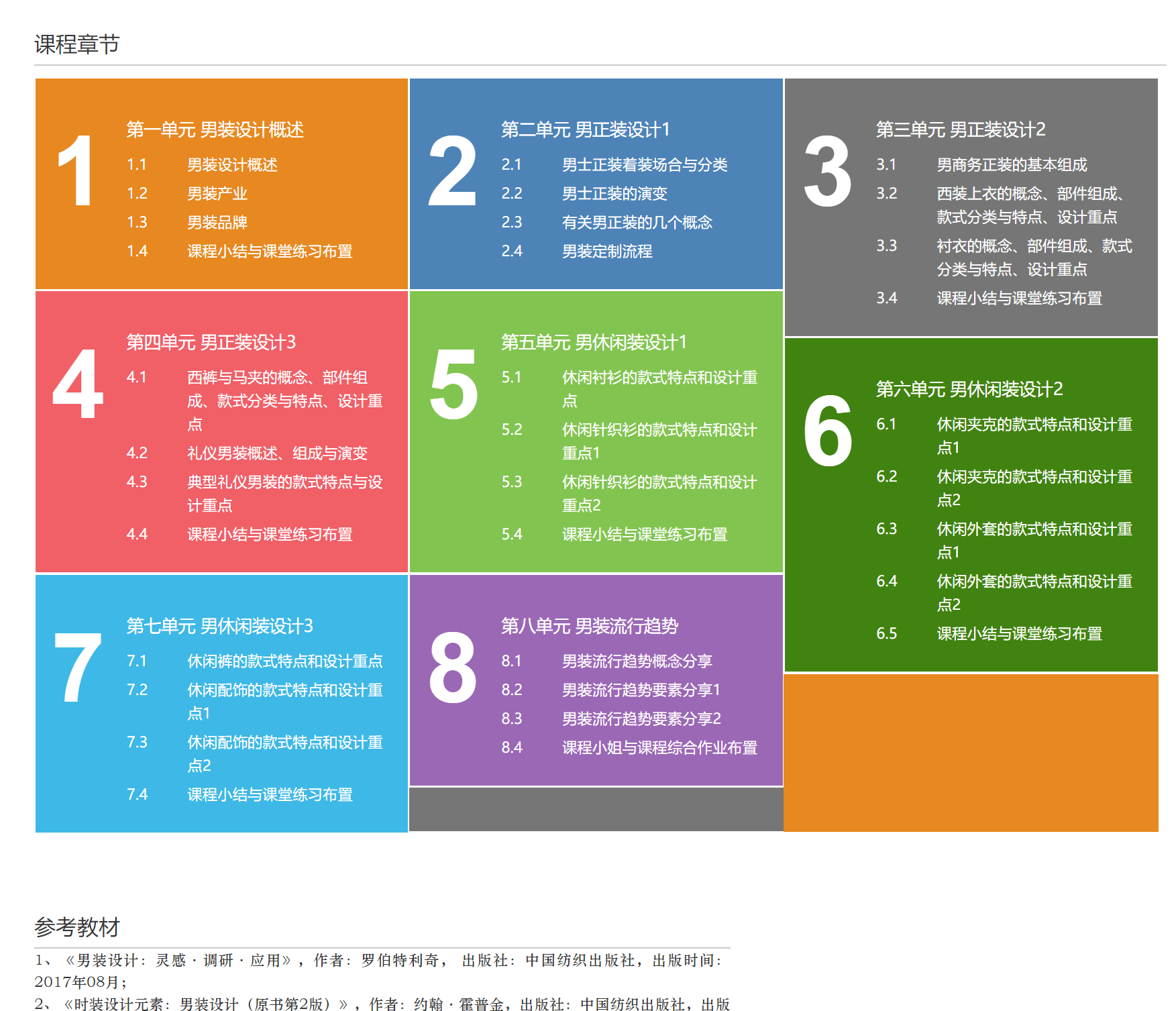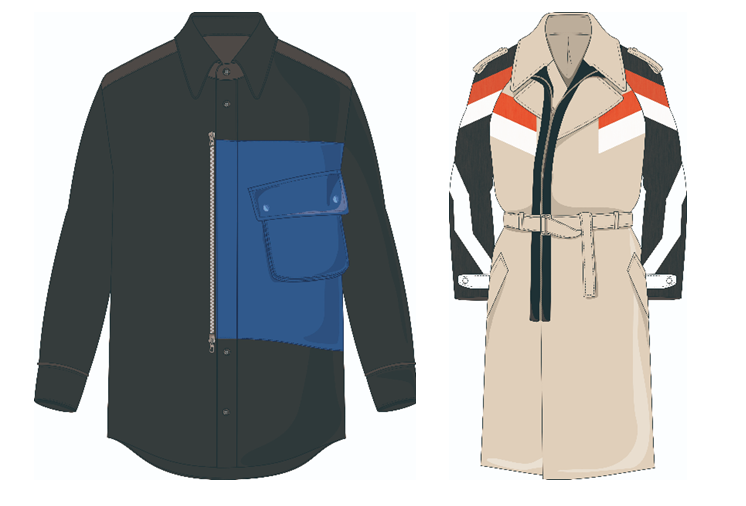 顾雯老师教授的“男装款式设计”是面向服装设计与工程方向学生开设的专业选修课。这门课的教学目标是通过教授和学习,使得学生对男装的特点、设计规则、款式认知等有所了解,并能结合流行元素进行男装款式的创意与设计。正常教学条件下,课堂一般以125的师生比进行面对面辅导,以辅导为主、理论讲授为辅。转为线上教学后,为了能让学生们更好地理解男装设计的规则,顾老师在授课内容上加入了更多的设计案例,并通过学习通和微信群等平台开展有关设计方案的讨论。在教学任务的设置上,针对学生现有的学习条件,鼓励利用手绘、iPad绘制、电脑软件绘制等多种形式开展,每周课程均给学生布置一个小作业练习,既不在课业上造成负担,又能让学生们对当周的学习内容加强理解并开展创意练习。特别值得一提的是,由于被滞留武汉,该门课的课件并没有带在身边,顾老师是在参考了服装设计专业的男装设计课程课件后,结合服装设计与工程专业学生的专业基础、学习目的等因素,重新从头组织了课程内容的设计,并从网络上的各种课程和设计资源库寻找更多的案例,博采众长,优化线上课程内容。