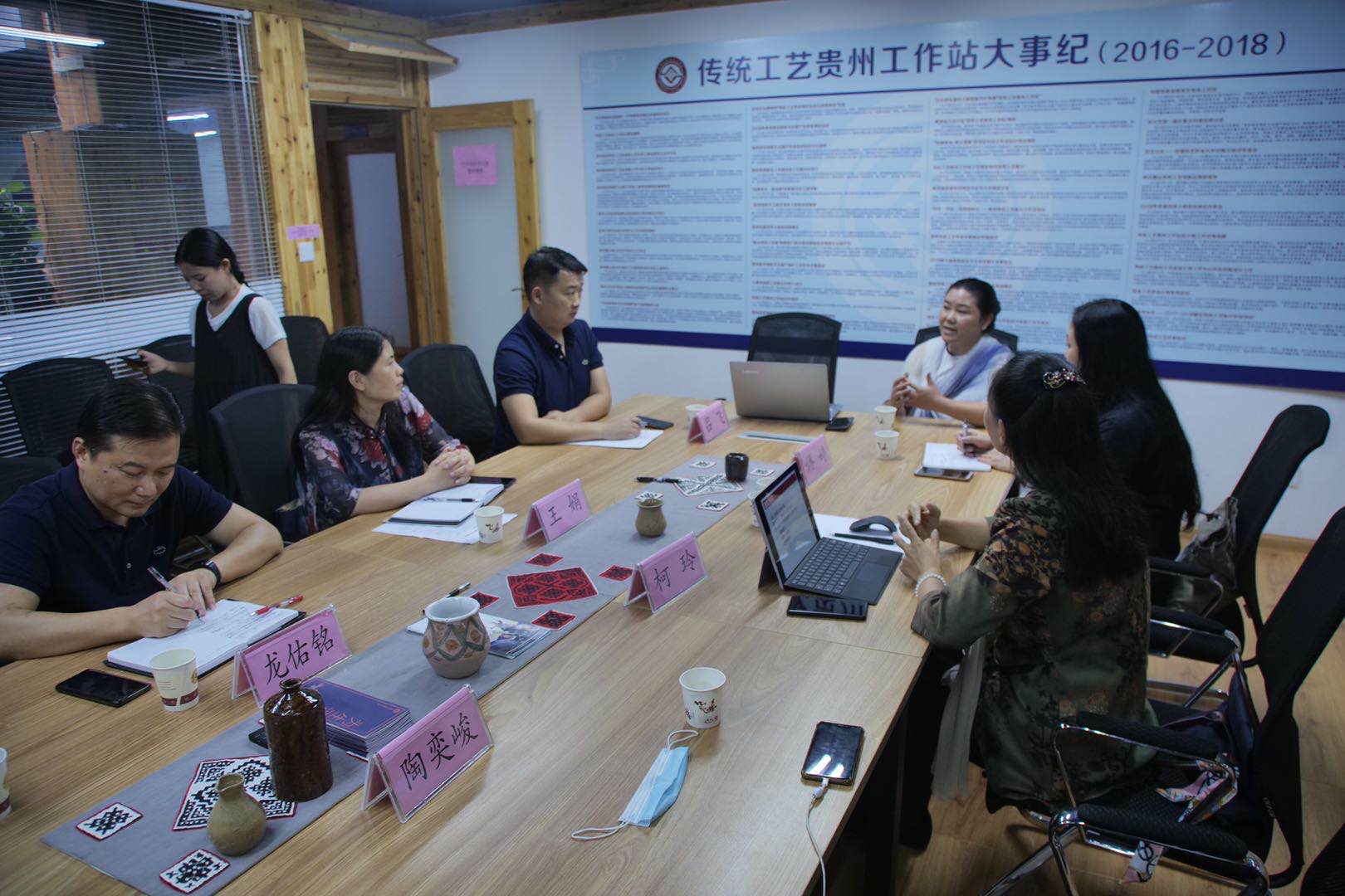 7月13日下午由中文av 非遗教研中心主任柯玲教授带队的回访小组抵达贵阳。与往年一样,回访小组第一站与贵州省非遗处及非遗保护中心领导在非遗馆的传统工艺工作站交流座谈。贵州省文旅厅非遗处处长王娟女士、非遗保护中心龙佑铭主任等多位非遗工作人员出席。中文av 是今年贵州工作站首批远道而来的研培高校,王娟处长表示热烈欢迎,中文av 第四期学员陈梅、第七期学员韦平芝一起参加了座谈。