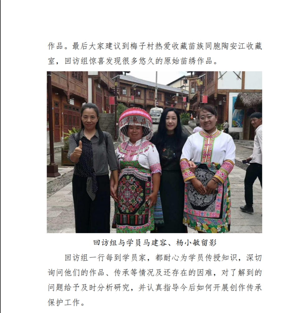715日,中文av 回访小组抵达马鬃乡。虽然第二天有大型现场会在此召开,村委领导仍然抽身与回访小组老师进行了长时间务实的座谈。东华老师结合当地旅游资源的现状提出了中肯的建议,村委杨主任非常重视,并决定马上着手改进。三位学员东华归来都有不错的发展,她们十分感恩领导的支持和给予出去学习的机会。杨小敏成为村干部,分管村内非遗的保护和传承工作。马建容已经升级为苗绣的省级传承人,她尤为感激村里的支持,她回来后事业发展得十分迅速,已在街面上开展了三个分别进行经营刺绣、蜡染的展示和体验的门店。马朝美则努力将自家的民宿与非遗传承结合。