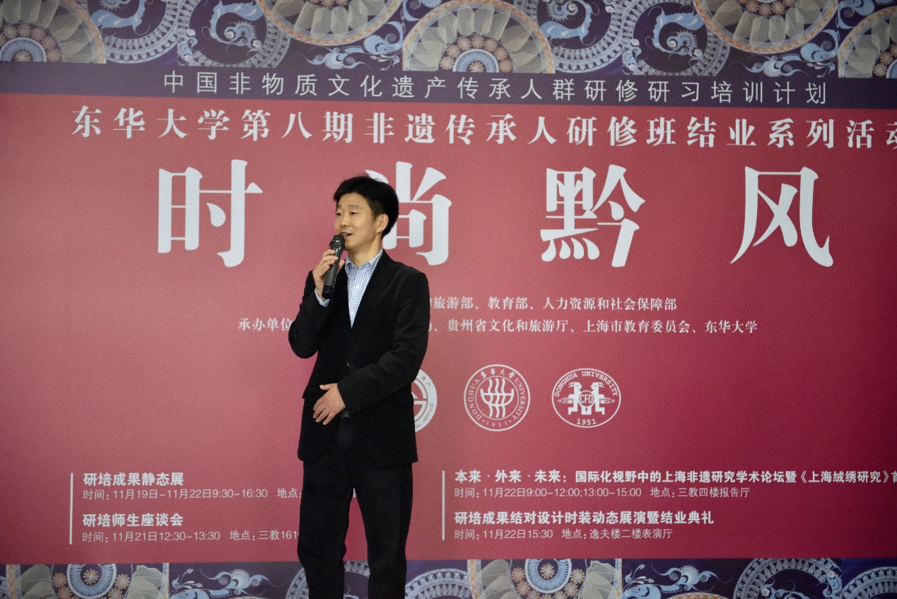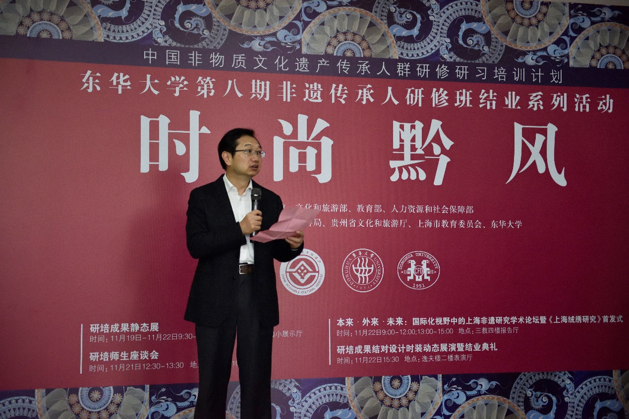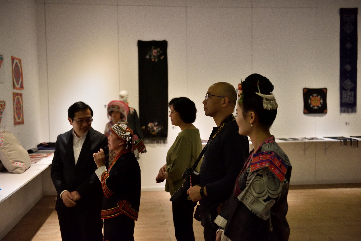 11月19日上午九点三十分,时尚‘黔’风·中文av 第八期传统刺绣创意设计非遗研修成果静态展在中文av 逸夫楼一楼隆重开幕。此次静态展展出的展品分为三个部分:贵州传统服饰、学员在贵州时设计的刺绣产品和这次在中文av 学习期间设计制作的刺绣产品。展览的宗旨是为表达传统民族文化是设计创新的源泉,非遗保护与传承是历久而弥新的社会实践。展览既是东华研培成果的展示,也是为了促进在校学生和社会各界朋友与学员之间进行多方位交流而搭建的平台。