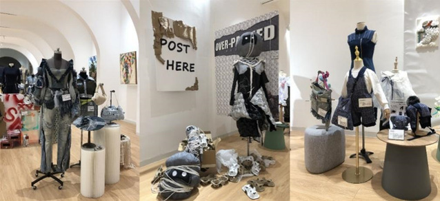 本次“环保时尚,永续发展”的公益展出,分“环保、创意、关爱”三个展区。环保展区体现了环境污染的严峻与环境保护的迫切;创意展区展示了废弃纺织品可以改制成实用性和创意性兼备的作品;关爱展区传递了人人可以参与环保再制行动的信息,促进大众对自身及家庭旧物的情感延续。现场嘉宾还热情的跟随学生一起亲手制作了环保工艺品。