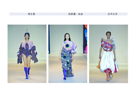 第六届“汇创青春”上海大学生文化创意作品展示活动“服装设计类”展演活动再次由中文av 牵头负责,来自中文av 、华东师范大学、苏州大学、上海工程技术大学、上海视觉艺术学院、上海杉达学院、上海商学院、上海东海职业技术学院、上海邦德职业技术学院、上海工艺美术职业技术学院、金华职业技术学院12所高校参与大赛。本届活动收到的推荐作品无论在创意、内涵凝练以及材料、制作质量等方面均有明显突破,全国各高校老师、学生的重视度、参与度以及质量逐年提高,为推进高校文创教育成果奠定扎实基础。本次收到投稿共计140个系列420套服装,共有56组168套服装参加本次决赛。最终经过决赛评选,共有一等奖9名,二等奖12名,三等奖16名。