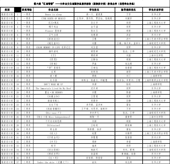 (服装设计类)获奖名单