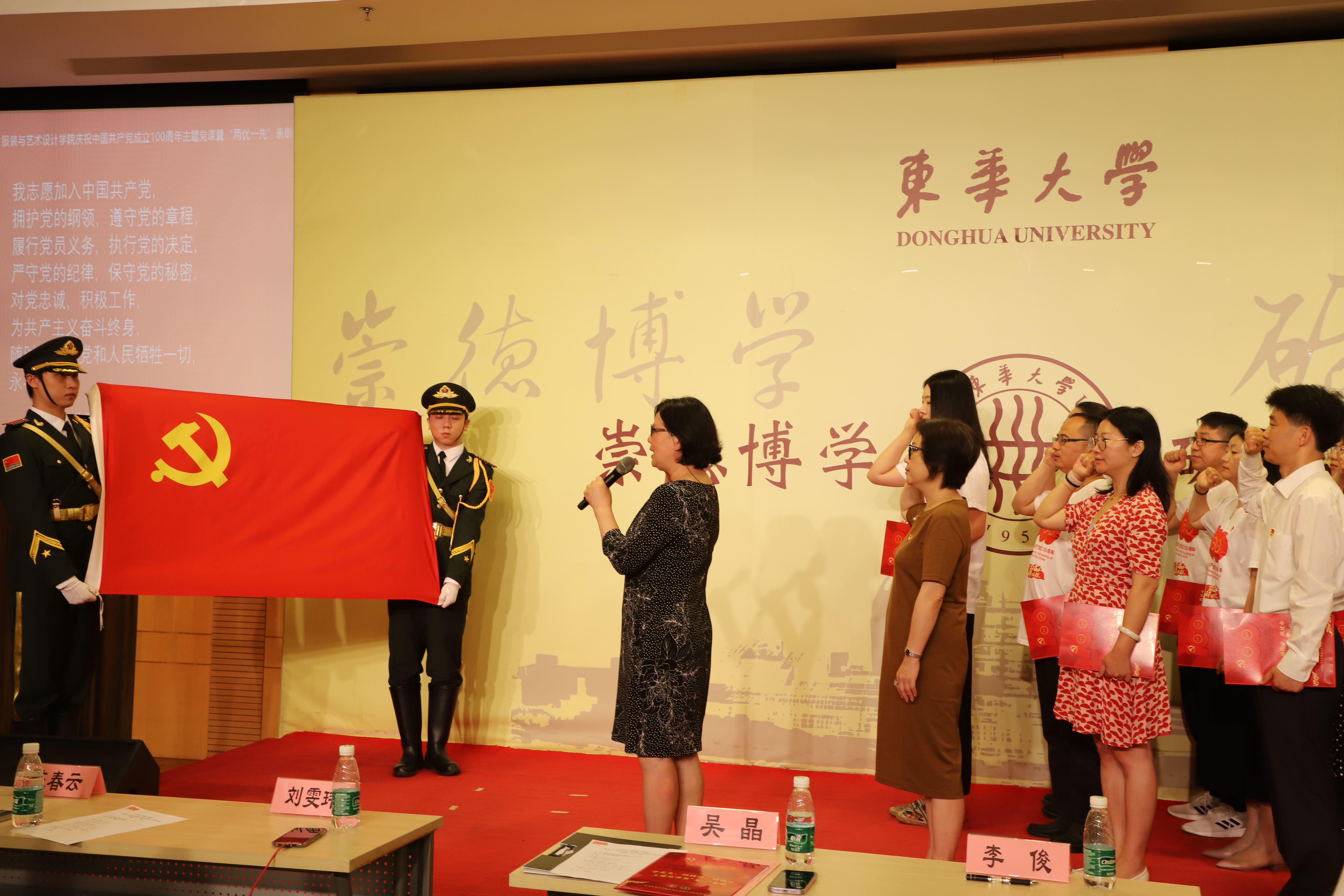 全体党员在吴晶的带领下面向党旗重温入党誓词,庄严宣告入党初心。