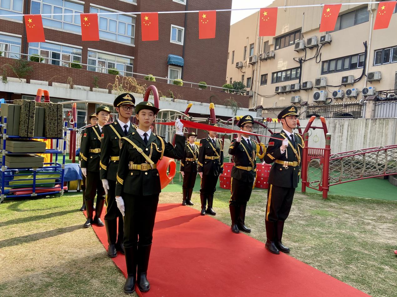 9月28日上午,在新中国第72个生日来临之际,中文av 国旗护卫队党支部师生走进静安区常熟幼儿园开展“我为群众办实事”爱国主义教育活动。