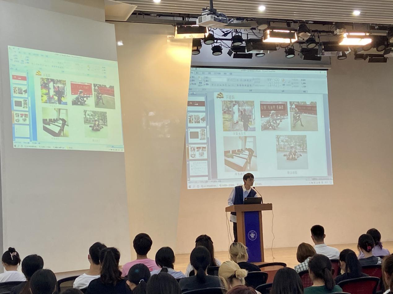 大会开始前,播放了由央广军事推出的《热血青春,参军入伍》的宣传片,带动了现场的氛围。随后,学院两名退伍军人分享了他们参军入伍的故事。
