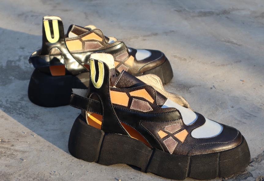 这次的鞋履设计是以山水为灵感,通过在皮料下填充泡棉的形式来表现充气效果。在整个制作过程中,我也收获了很多实践经验,了解了很多关于真皮的特性以及应用场景的知识。在未来也会继续学习,保持对设计的热情。