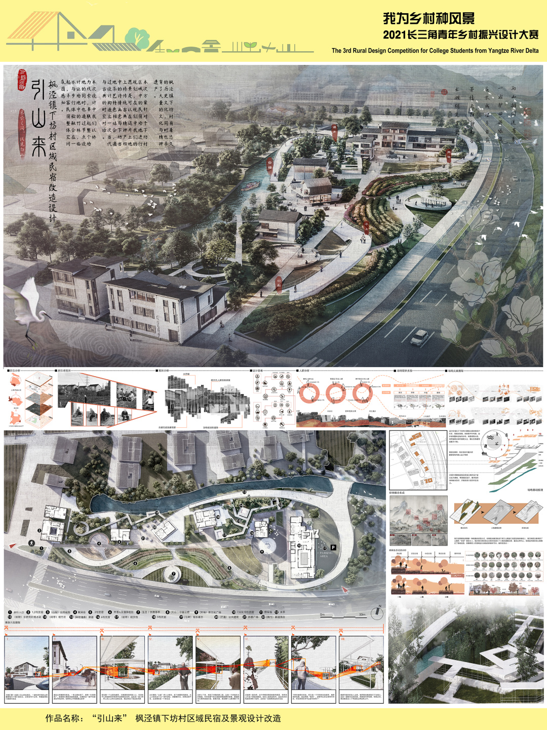 2021“我为乡村种风景”长三角青年乡村振兴设计大赛是一项面向长三角高校师生、青年设计师的设计竞赛活动。大赛历时10个月,有效地激发了广大青年学生或设计师运用自身的创意智慧,积极参与乡村振兴的实际课题,为乡村的人居环境提升、乡村产业升级、乡村文化传承等提供了多重的空间及视觉设计方案。在人才培养环节,真实的乡村设计课题让青年学生在实地调研、设计思维、系统思维的训练中提升专业实操能力,以此培养青年设计人才的社会责任感和时代使命感。